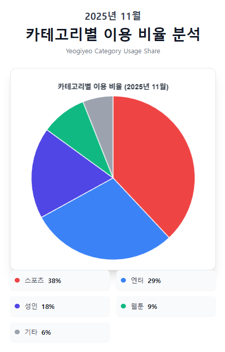 2025년 11월 실제 접속 로그 기준, 스포츠 중계가 압도적 1위